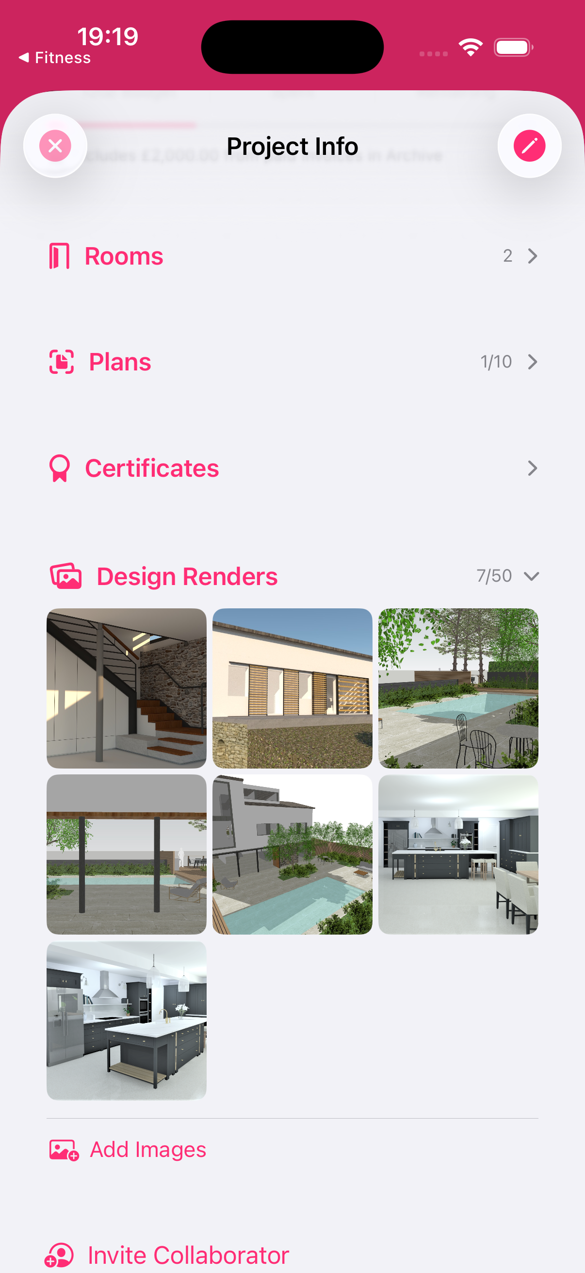 Keep your design visualisations and inspiration images together — a gallery for your renovation vision.